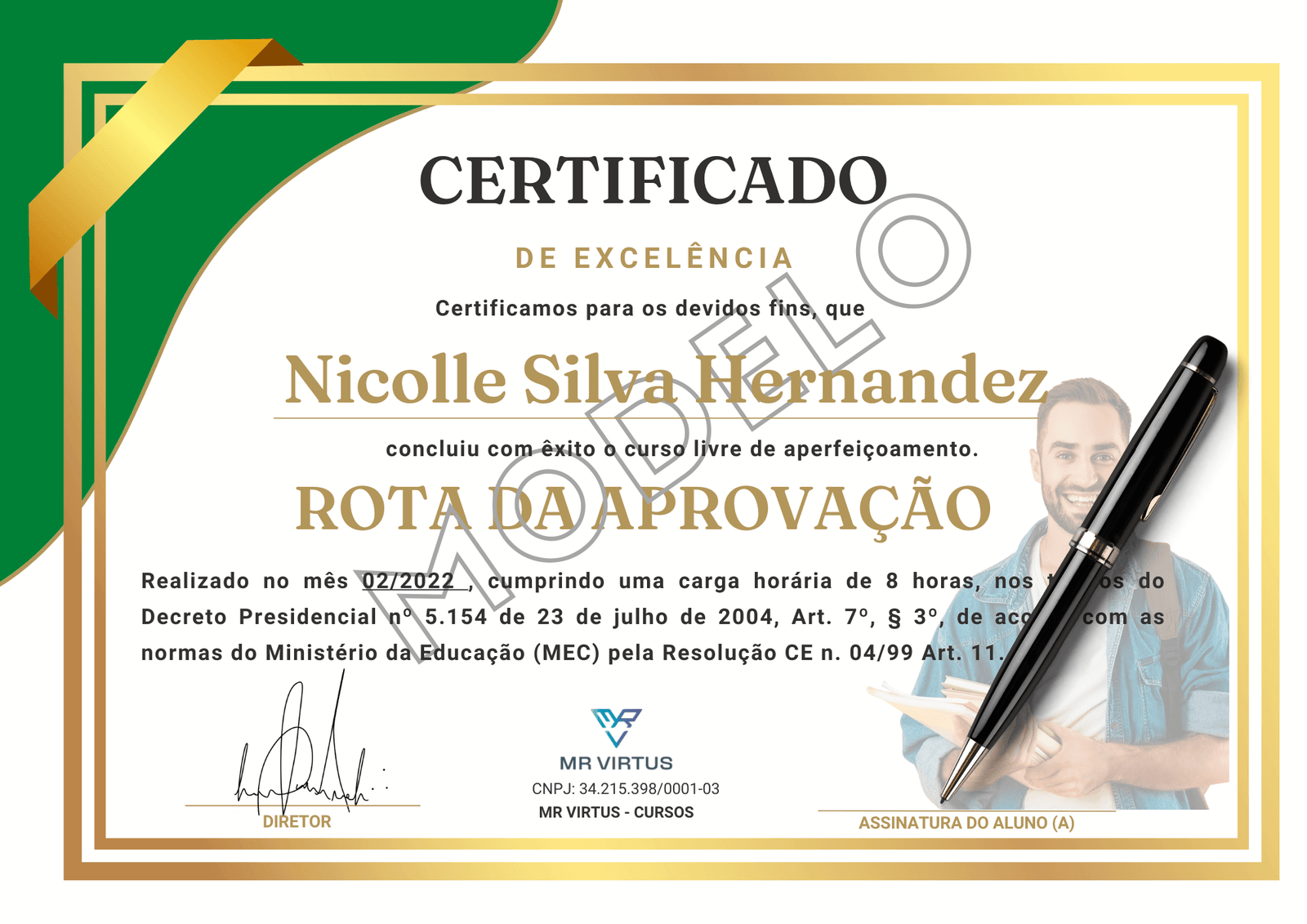 Após finalizar seus estudos você terá acesso a um certificado de conclusão, direto na sua área exclusiva de aluno, atestando a sua capacitação no treinamento Rota da Aprovação.