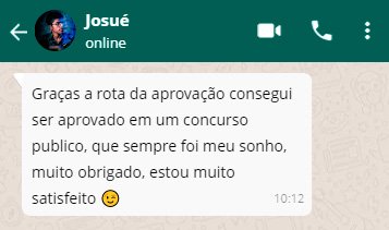 Com o Curso Rota da Aprovação, você terá o passo a passo completo em vídeo, onde poderá alcançar o sucesso com o método de estudos que desenvolvemos para ser aprovado em provas e concursos públicos.