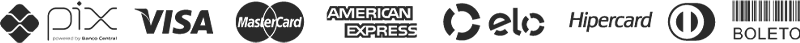 Você pode fazer o seu pagamento via Cartões de Crédito, Débito e PIX.